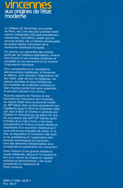 Tous les aspects de l’histoire et des fonctions du monument sont analysés, du manoir établi dans la seconde moitié du XIIe siècle dans un bois appartenant aux Capétiens jusqu’à l’énorme forteresse bâtie par Jean le Bon et Charles V, achevée par Charles VI. Principal lieu de séjour de tous les souverains des Xlle-XVe siècles après le Palais de la Cité à Paris, c’est aussi actuellement en France la seule résidence importante d’un souverain médiéval qu’il nous soit encore possible de visiter. À ce titre, la disposition et l’évolution des lieux, la vie quotidienne et l’organisation des services domestiques du souverain, sont des éléments indispensables pour comprendre la signification du monument. Faire l’histoire d’une grande résidence royale médiévale, découvrir la transformation d’un manoir de chasse en capitale politique et administrative, c’est aussi comprendre la naissance de l’État moderne.