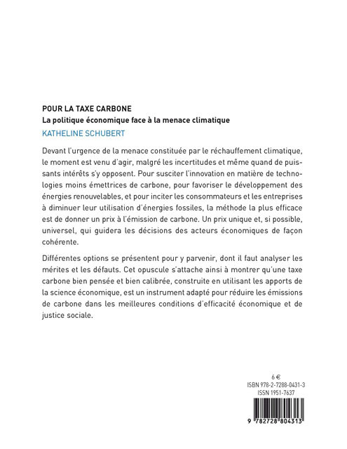 Différentes options se présentent pour y parvenir, dont il faut analyser les mérites et les défauts. Cet opuscule s’attache ainsi à montrer qu’une taxe carbone bien pensée et bien calibrée, construite en utilisant les apports de la science économique, est un instrument adapté pour réduire les émissions de carbone dans les meilleures conditions d’efficacité économique et de justice sociale.