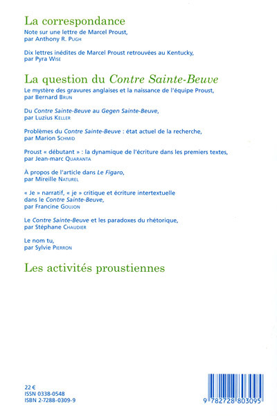 Problèmes du Contre Sainte-Beuve : état actuel de la recherche, par Marion SCHMID