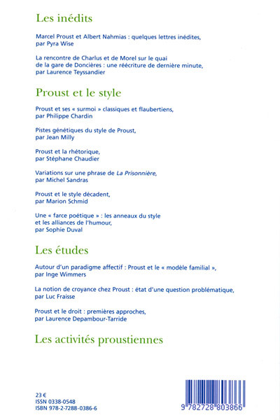 Autour d’un paradigme affectif : Proust et le « modèle familial », par Inge WIMMERS